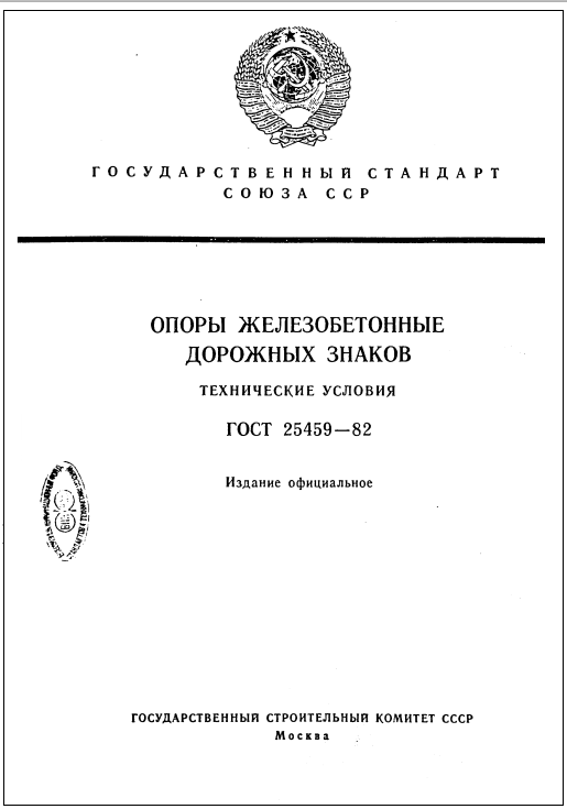 ГОСТ 25459-82. Опоры железобетонные дорожных знаков