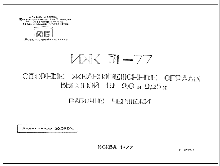 Серия ИЖ 31-77. Сборные железобетонные ограды высотой 1.2. 2.0 и 2.25 м.