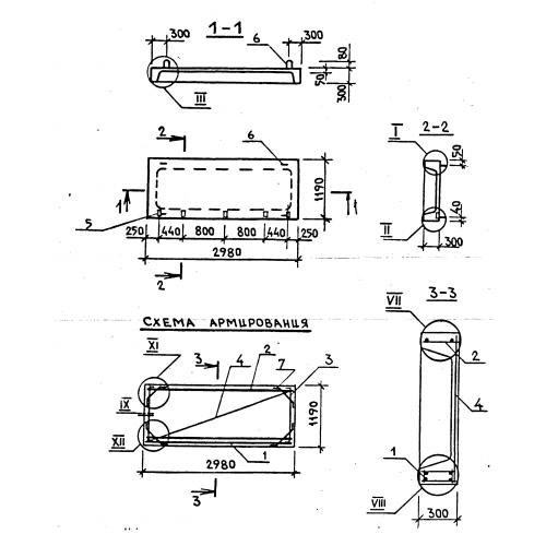 ПРЛ 30.12.3 Плита лоджий ребристая.  Панели перекрытия лоджий по серии 1.137.1-6.