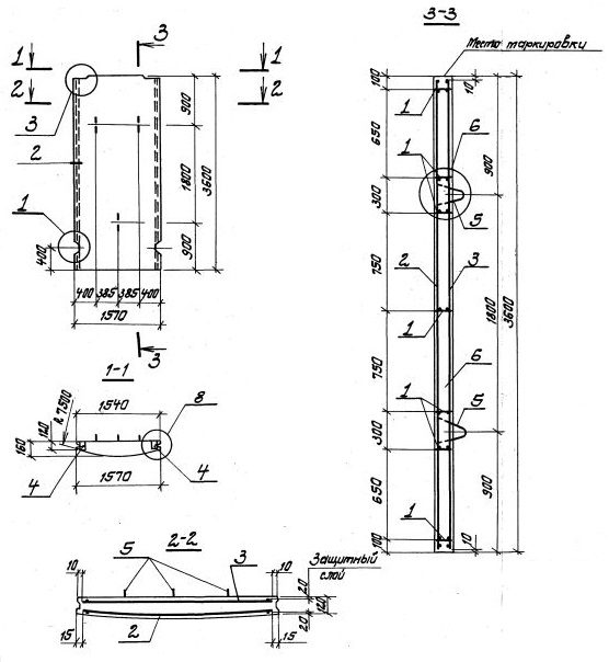 Панель стеновая для цилиндрических сооружений с радиусом кривизны 7,5 м; высотой 3,6 м; первого типа по нагрузке.